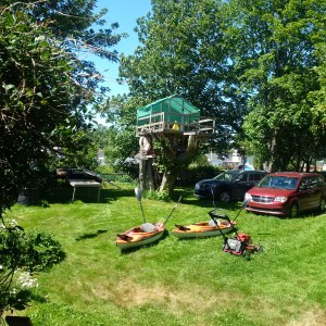 Newfoundland back yard! Kayaks, Lawn mower, tree house and Zip line, pretty cool!