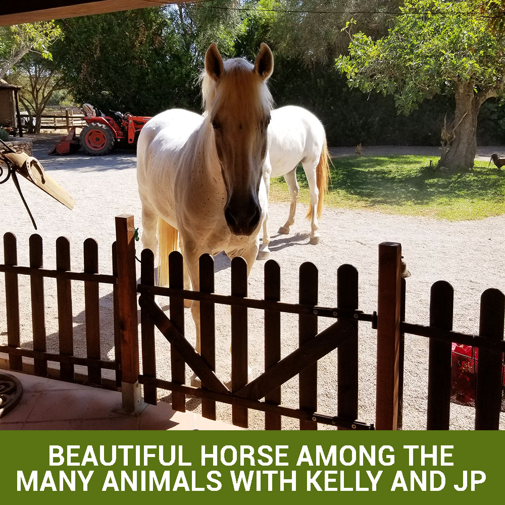 I arrived in Mallorca (Majorca) with my luggage; to play it safe, I had bought smart tracking tags for my suitcases. I am staying with my friend Kelly and husband JP. Kelly is Canadian and JP is Swiss. They have a lovely, very large property with about 30 animals: horses, goats, hens, dogs and many cats. Kelly is just marvelous with all the animals, but it is a lot of work. I hope to help Kelly, who has become an accredited teacher/mentor, set-up a HeartMath project.